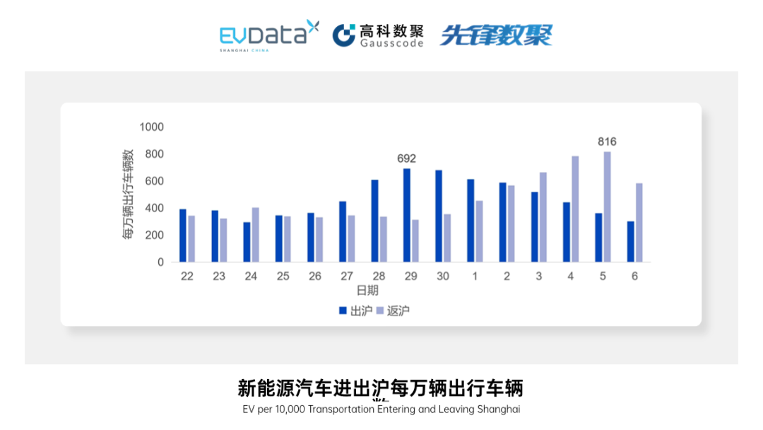 为分析今年节日期间跨市出行情况,本文将从总量、进出沪高峰、短期出行特征、充电体验和目的地分布五个维度进行分析。